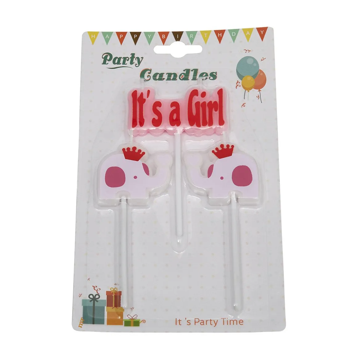 Een taart maken voor een pas geboren baby of babyshower is natuurlijk al heel speciaal, met deze taartkaarsjes wordt het nog iets leuker. Dit setje bestaat uit 2 kaarsjes in de vorm van een roze olifantje en 1 kaarsje met daarop “It’s a Girl”. De taartkaarsjes hebben een handig prikkertje waarmee ze makkelijk in de taart geprikt kunnen worden en ook weer makkelijk verwijderd kunnen worden.