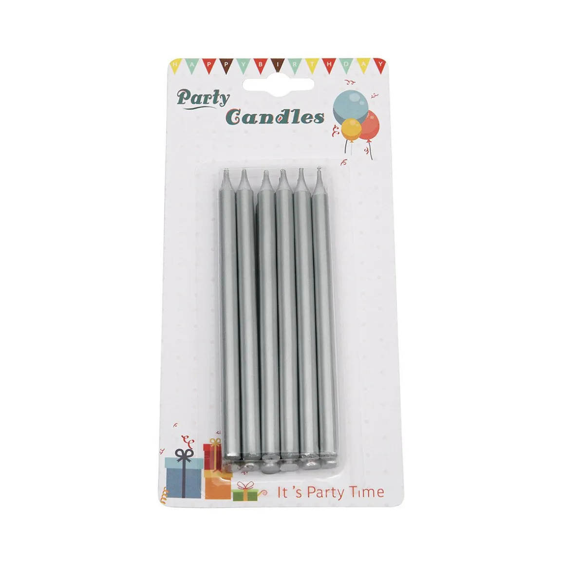 Prachtige taartkaarsjes in een mooie zilveren kleur. Deze taartkaarsjes zijn extra lang en branden langer als een normaal taartkaarsje.