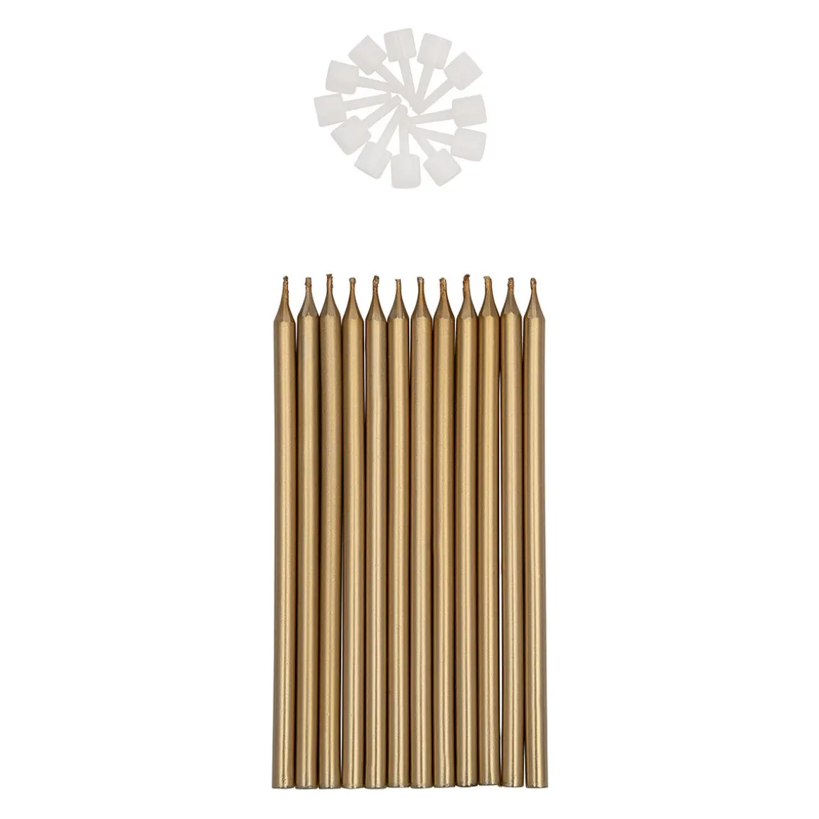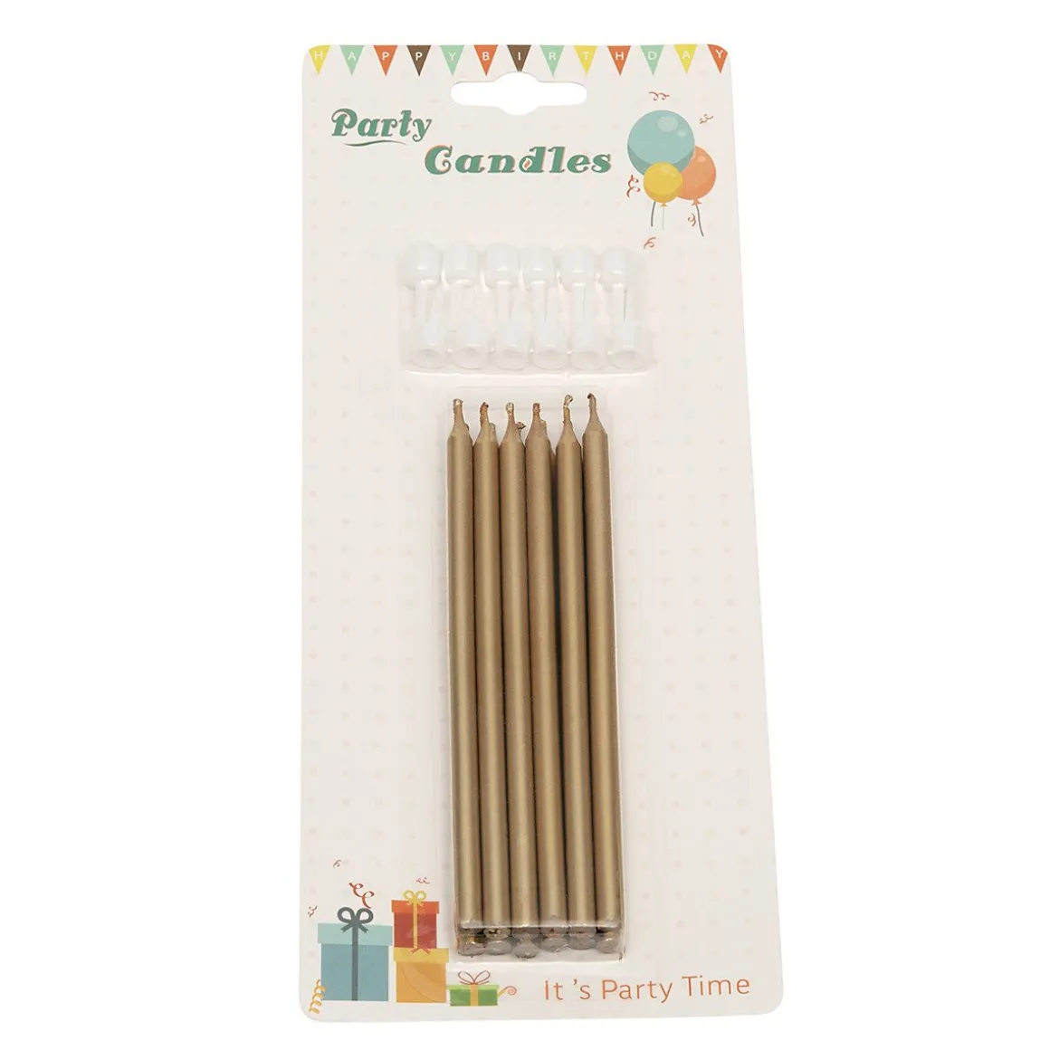 De Taartkaarsjes met houders Lang Goud 12st. zijn prachtige kaarsen die elke taart, cupcake of ander baksel er extra chique en classy uit laten zien. Dankzij de mooie gouden kleur kun je deze kaarsjes heel goed gebruiken op bijvoorbeeld verjaardagstaarten, maar ook voor baksels voor bijvoorbeeld bruiloften en evenementen. Daarnaast passen de Taartkaarsjes met houders Lang Goud 12st. ook heel goed bij het thema Kerst en Oud & Nieuw. Wat voor taart je ook bakt met deze taartkaarsjes maak je er een waar spektakelstuk van.