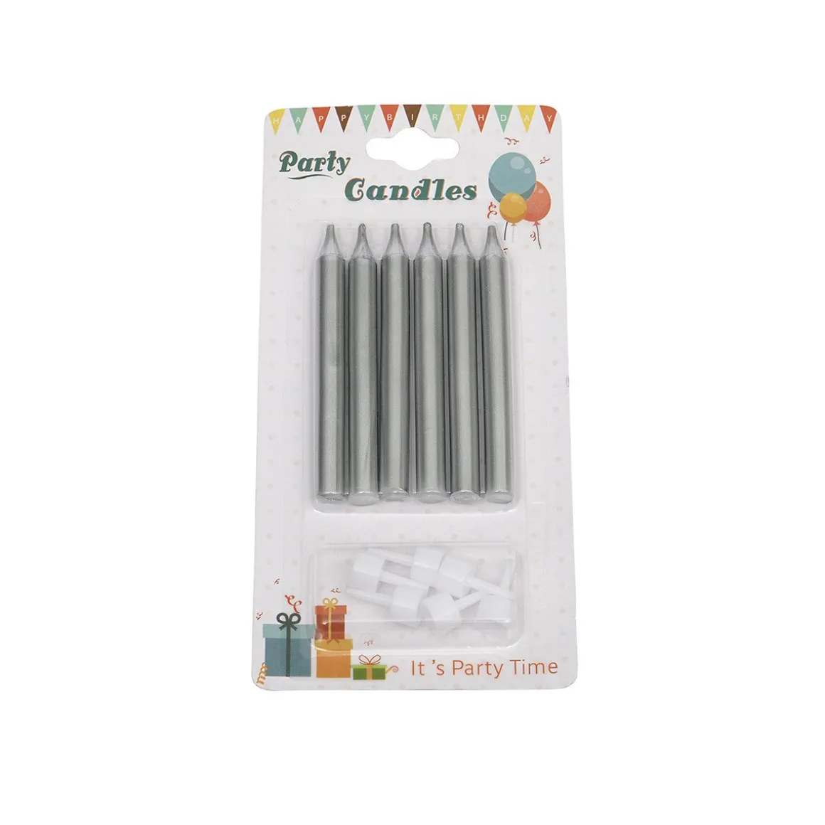 Deze prachtige taartkaarsjes zijn perfect voor het afmaken van een verjaardagstaart. De kaarsjes hebben een mooie glanzende zilveren kleur en beschikken over een houdertje.