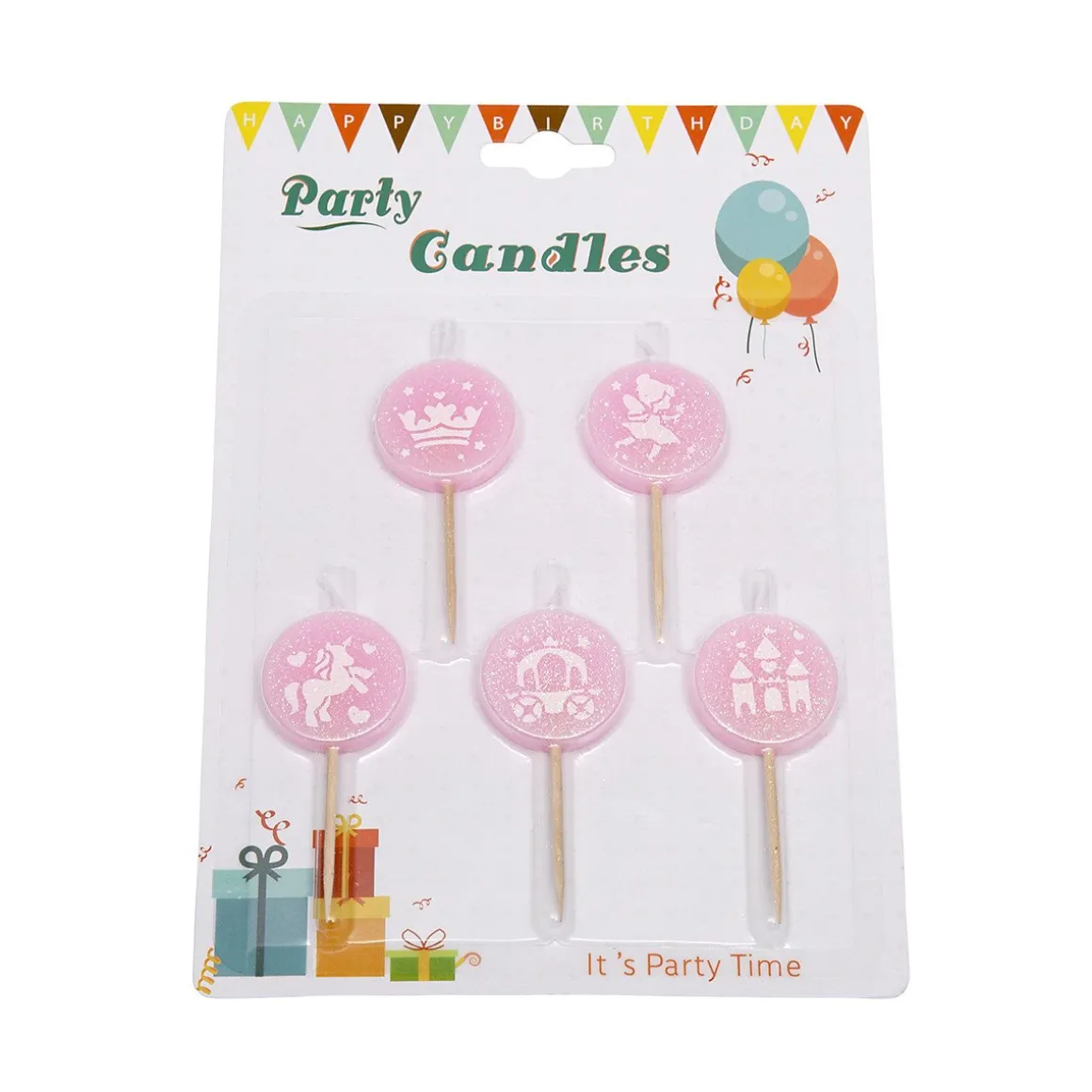 Liggen de pumps, het kroontje en de prinsessenjurk al klaar? Dan kan het sprookje beginnen! Met deze kaarsen maak je een prinsessen sprookjes taart of cake helemaal compleet. De kaarsen hebben allemaal een roze ronde glitter vorm, met daarop een sprookjesachtige opdruk. De kaarsen zijn niet alleen voor een (sprookjes) verjaardag te gebruiken, maar denk ook eens aan een babyshower.