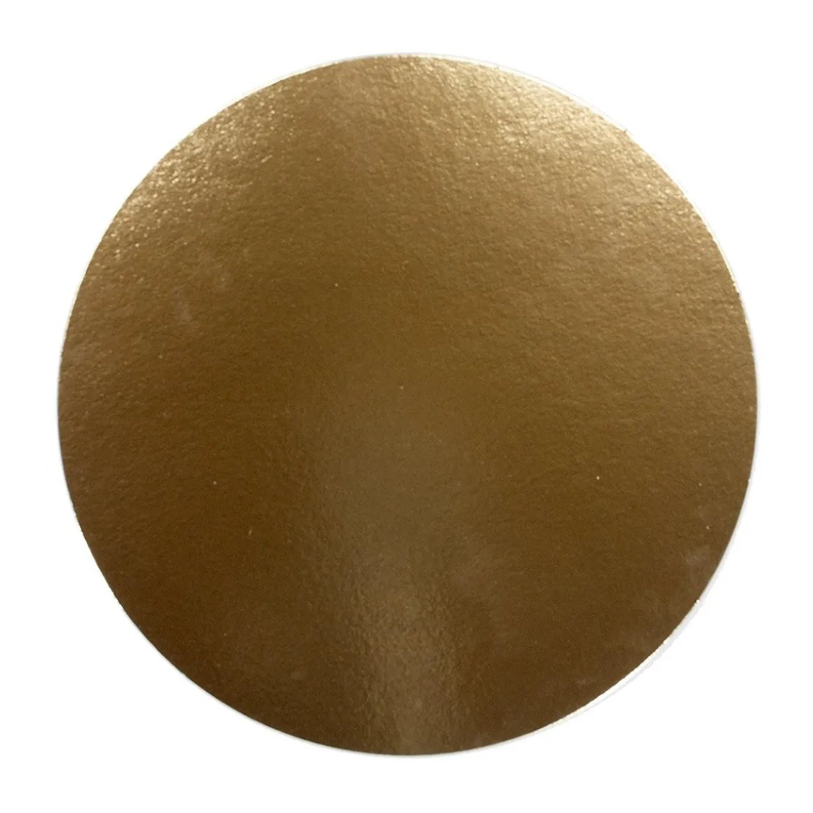 Dit taartkarton is aan één zijde beplakt met een goudkleurige folie, de andere zijde is voorzien van wit papier. Je kunt dit taartkarton gebruiken als tussenkarton maar ook als onderkarton. Gemaakt van 950 grams karton.