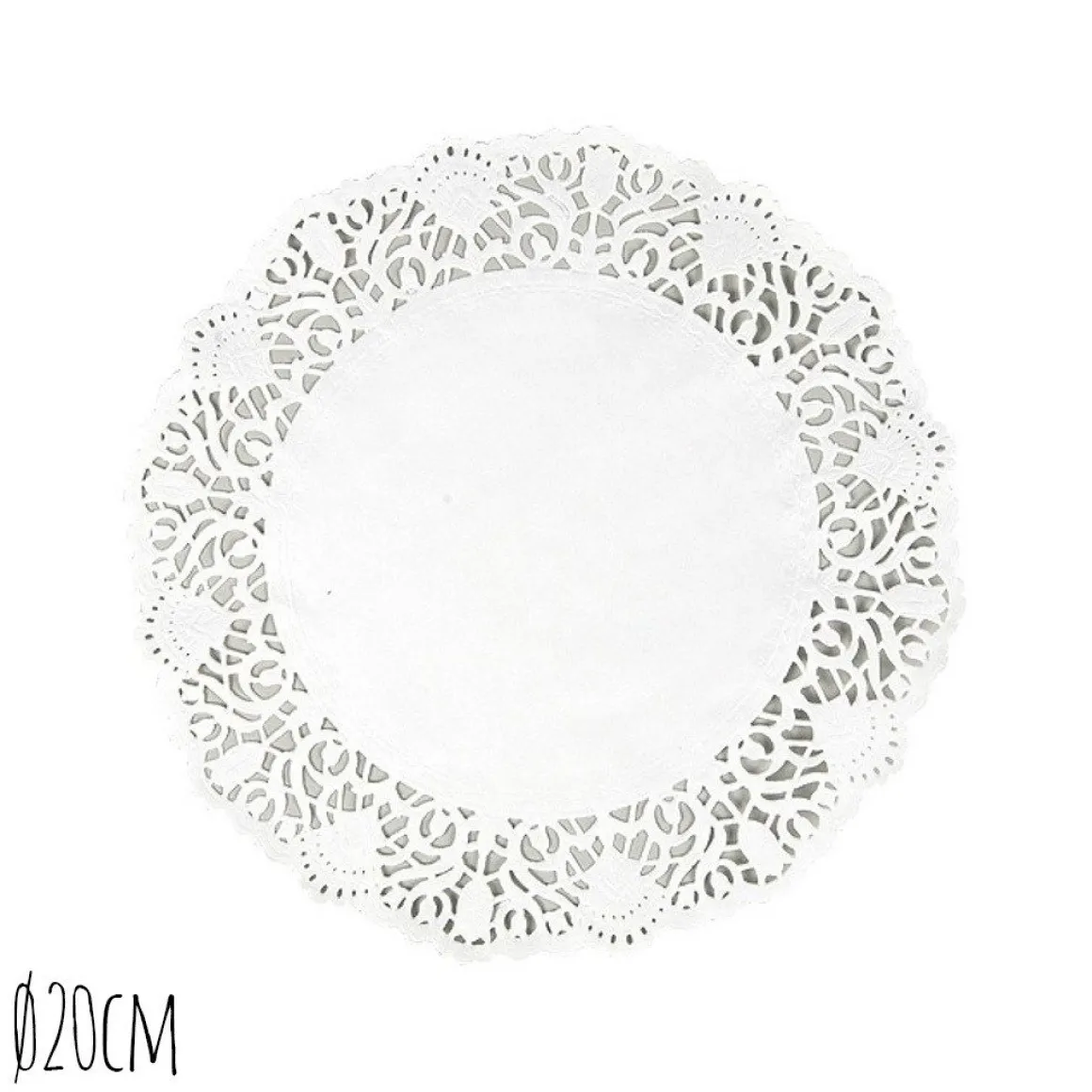 Een pak van 250 witte taartranden met een diameter van Ø20cm. Deze taartranden zijn voor decoratief gebruik onder een taart. De taartranden zijn van dun kwaliteitspapier en bestand tegen temperaturen van 0℃ tot 70℃. We bieden vele soorten en maten aan, variërend van Ø10cm tot Ø40cm.