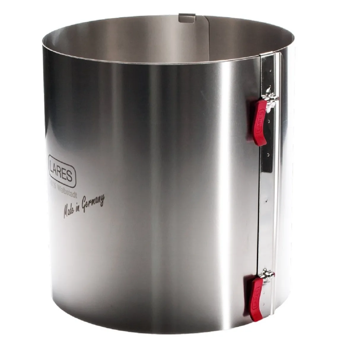 Extra hoge verstelbare taartring. Met deze taartring kun je taarten bakken van Ø17 tot Ø30. De taartring is gemaakt van roestvrij staal en kan dus in de vaatwasser. Hitte bestendig tot 200°C.