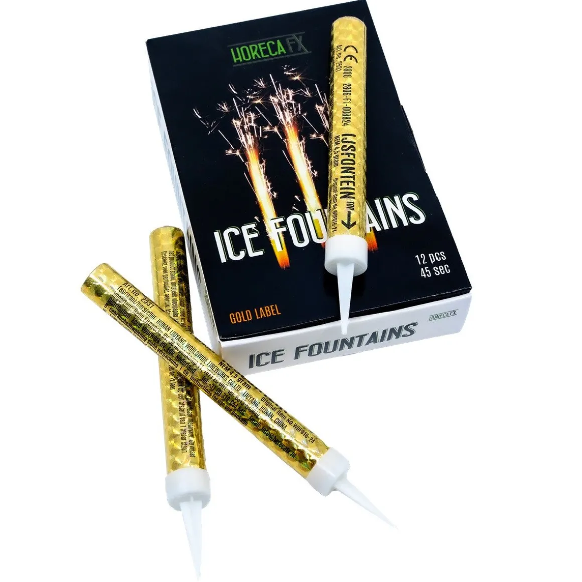 De ijsfonteinen hebben een gouden kleur en het vuurwerk is zilver. Het vuurwerk heeft een brandtijd van 45 seconden. Verder bevat de verpakking 12 feestelijke fonteinen.