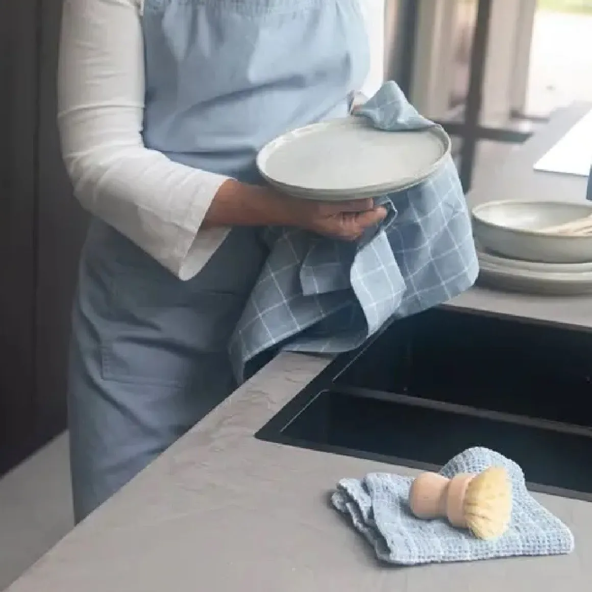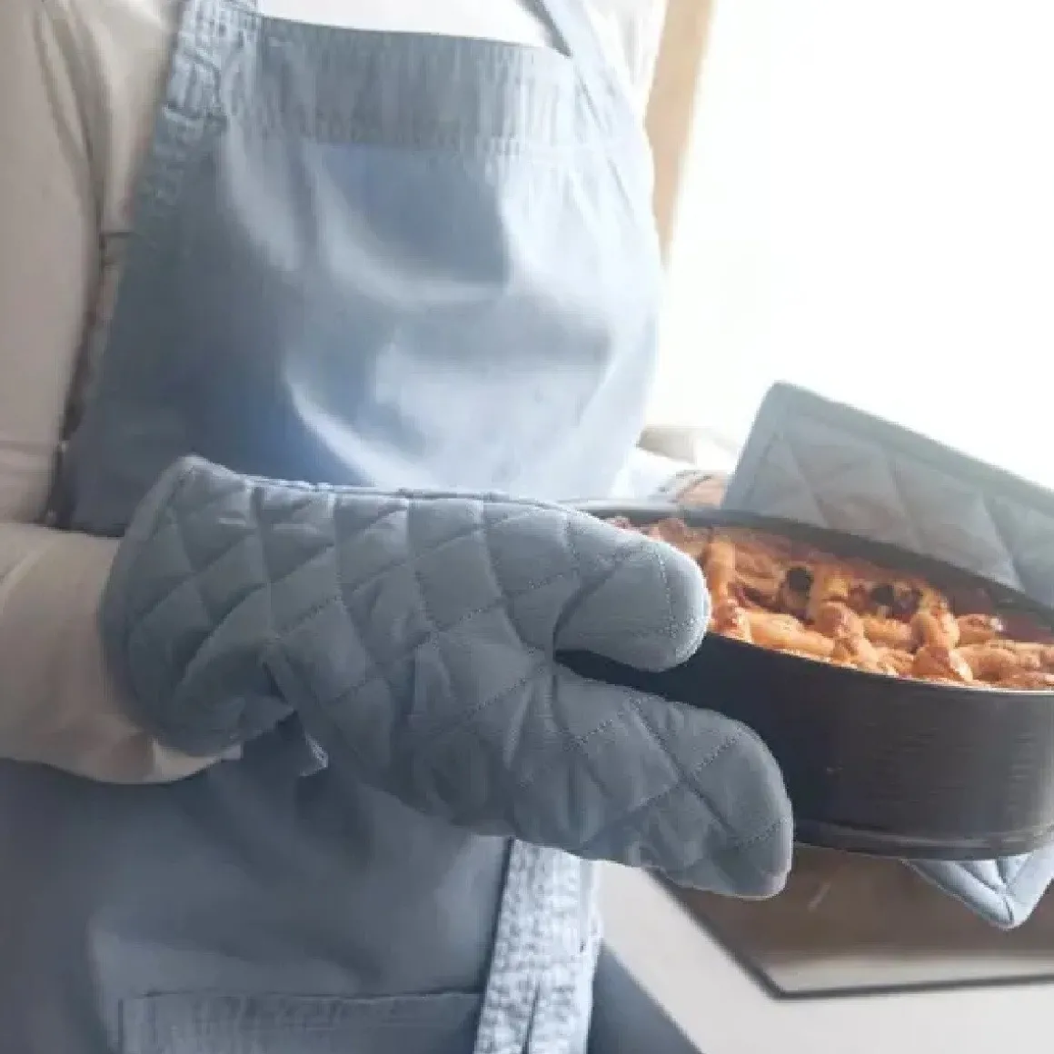 Het jeans blauwe schort heeft een lengte van 90 centimeter en een breedte van 75 centimeter. Daarnaast kun je de ceinturen zelf naar de juiste maat aanpassen.