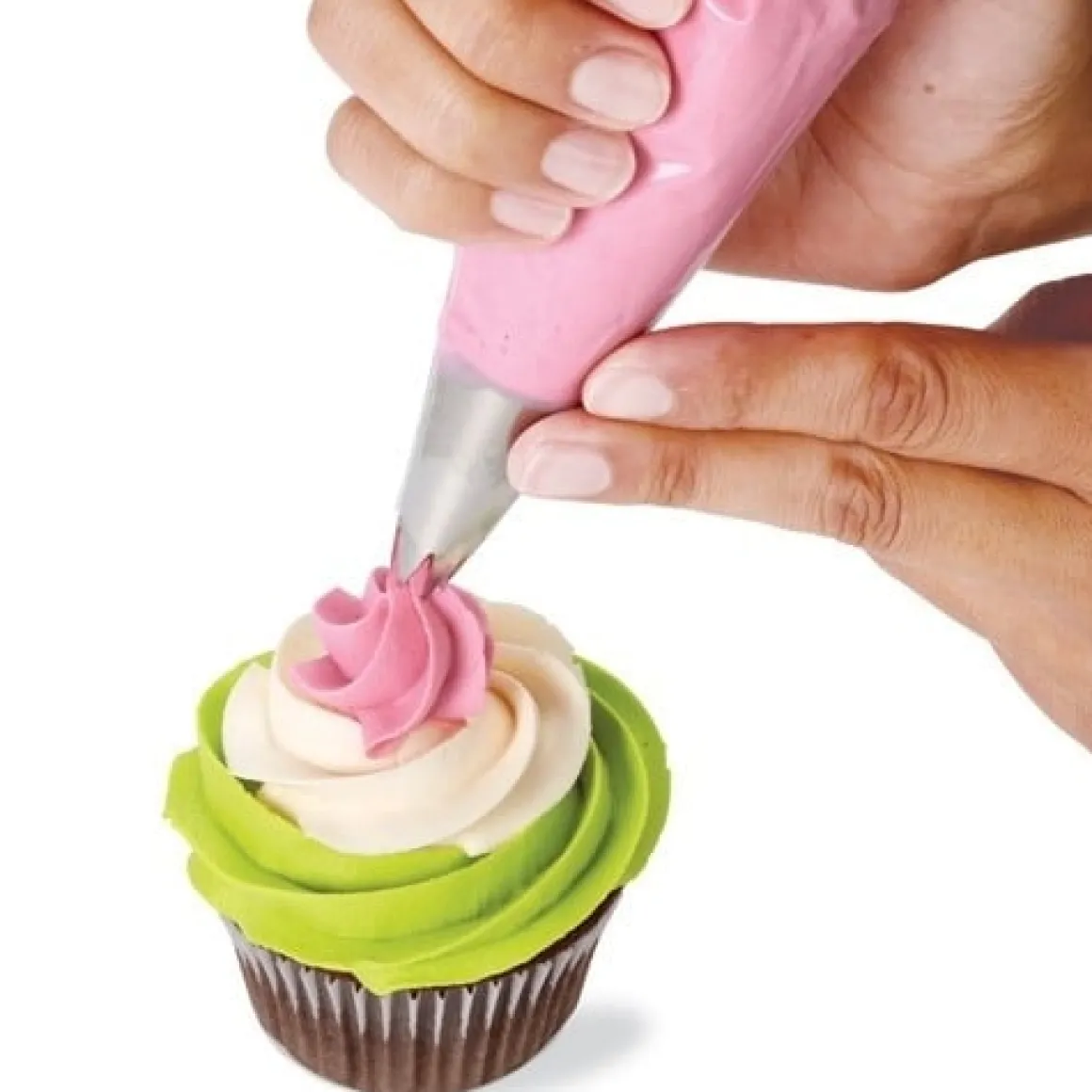 Maak de mooiste cupcakes met deze set van Wilton! De set bestaat uit acht wegwerp spuitzakken en vier verschillende spuitmondjes. Super leuk voor feestjes of andere gelegenheden!