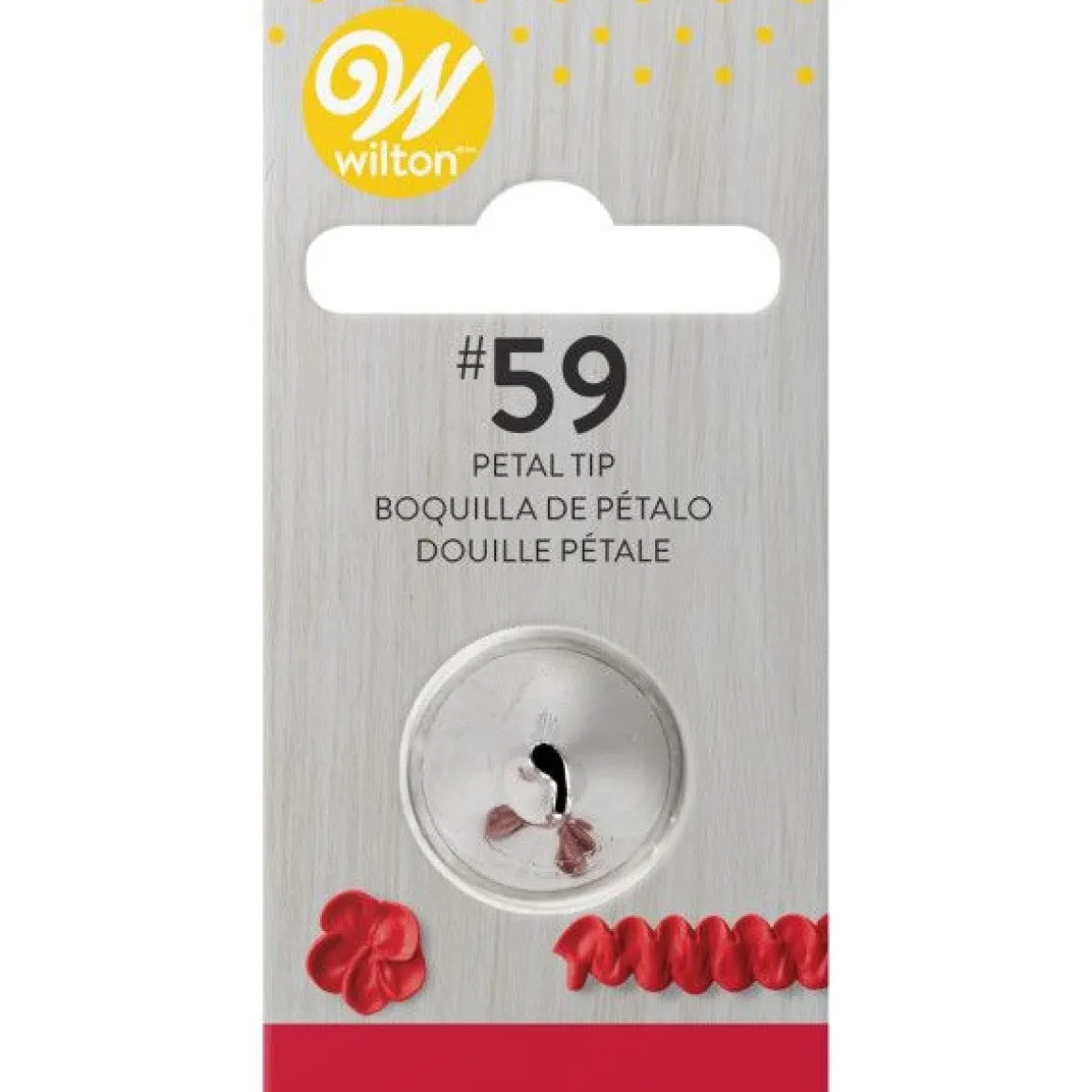 Het Wilton Spuitmondje #59 heeft gladde zijkanten en een kenmerkende gebogen vorm. Dit spuitmondje is ideaal voor het maken van diverse decoraties, zoals botercrèmebloemen, strikjes, ruches en golvende patronen. Perfect om taarten, gebakjes, cupcakes en andere creaties sierlijk af te werken.
