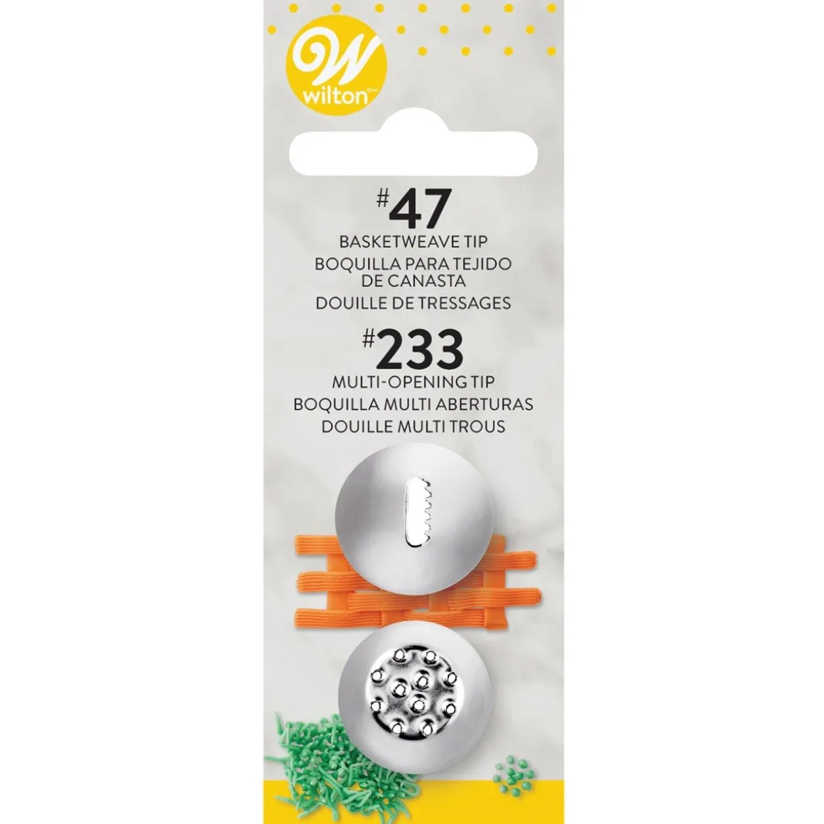 Maak prachtige decoratie met deze twee metalen spuitmondjes van het merk Wilton. Ze zijn te gebruiken om schitterende gladde en geribbelde lijnen paretjes, cluster van draadjes, sterretjes en gras te maken.