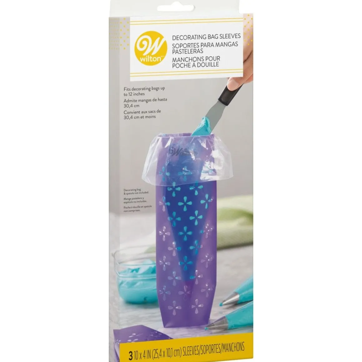 De verpakking bevat 3 Wilton spuitzakhouders, die een afmeting van 25 bij 10 centimeter hebben. Deze zijn geschikt voor zakken tot een lengte van 30 centimeter.