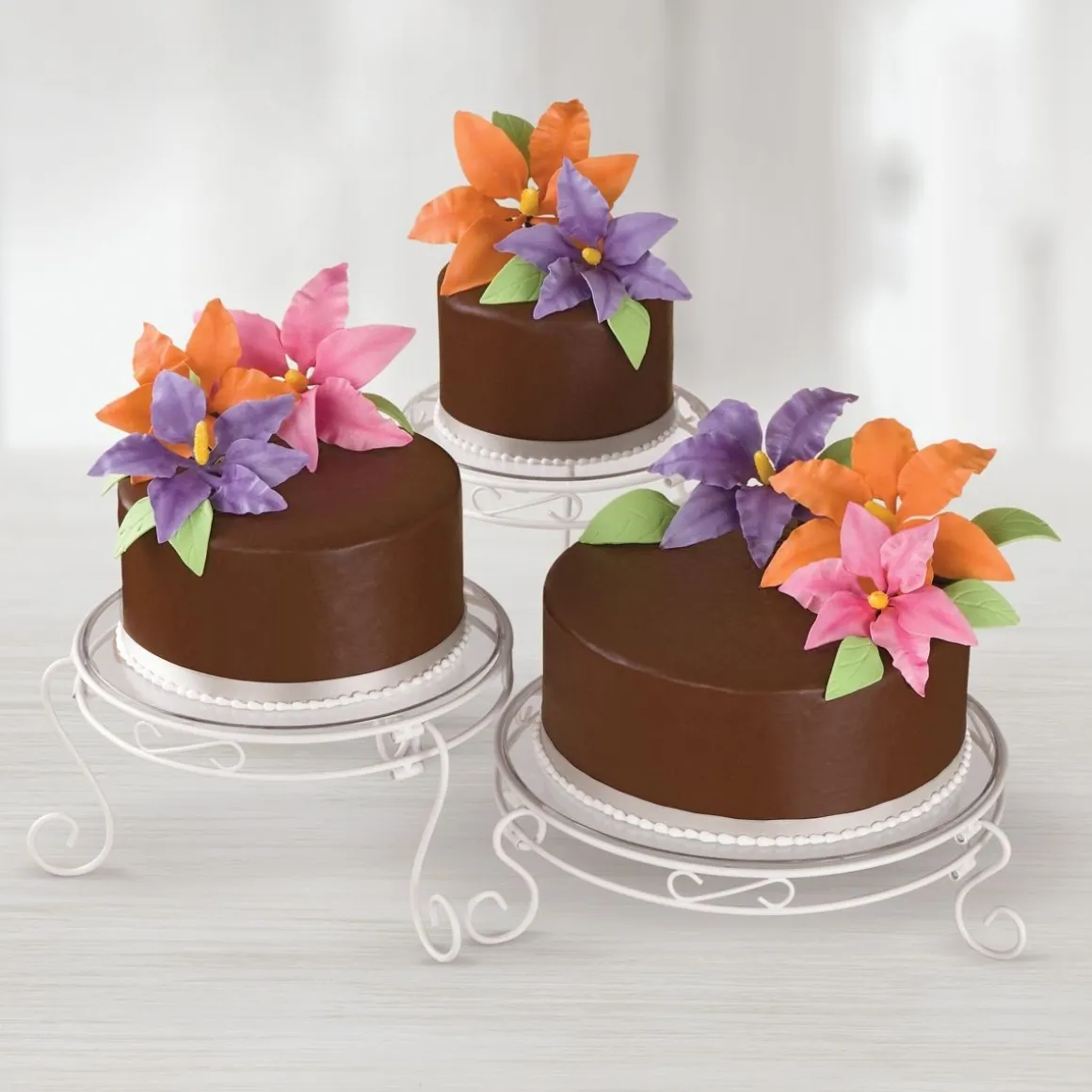 Met deze prachtige klassieke taartstandaard weet jij zonder twijfel iedereen te verrassen! De set bestaat uit drie standaards met sierlijke vormen en drie transparante plateus. De doorsnede van de plateaus zijn: 20, 25 en 30 cm.